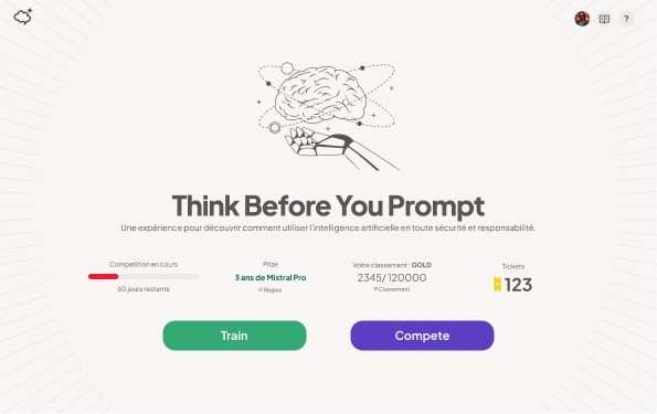 Direction l'arène avec vos tickets gagnés. 3 minutes chrono, 200 à 300 questions orientées pratique (pas de théorie pure). Un seul faux pas et c'est game over. Boss fight final contre une IA non responsable qui représente tous les risques que vous avez appris à déjouer. Ambiance arcade, tension maximale, apprentissage par l'action.